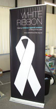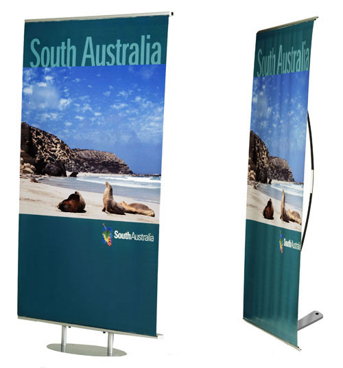 Portable banners for exhibitions, trade show and product launch conferences, hotel foyer welcome signs and reception area signage for displaying your company products. We can ship to your company finished roll up and retractable banners on banner stand material and vinyl Pvc banner sign materials. We are your single sided and double sided banner stand, roll up systems supplier. Approximate weight of finished full size retractable roll up banner stand sign display is a light weight banner of 6kg, so promote your company with a banner stand sign from Visual Signs.